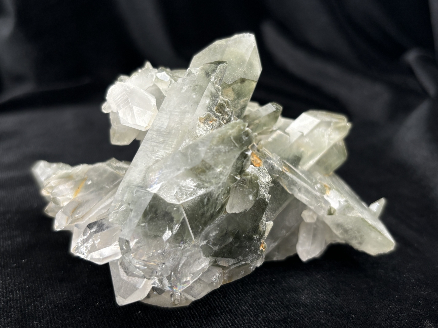 Mooi groepje kwartskristallen met chloriet, Baluchistan, Afghanistan - 226 gram - 9 x 8,5 x 7 cm.