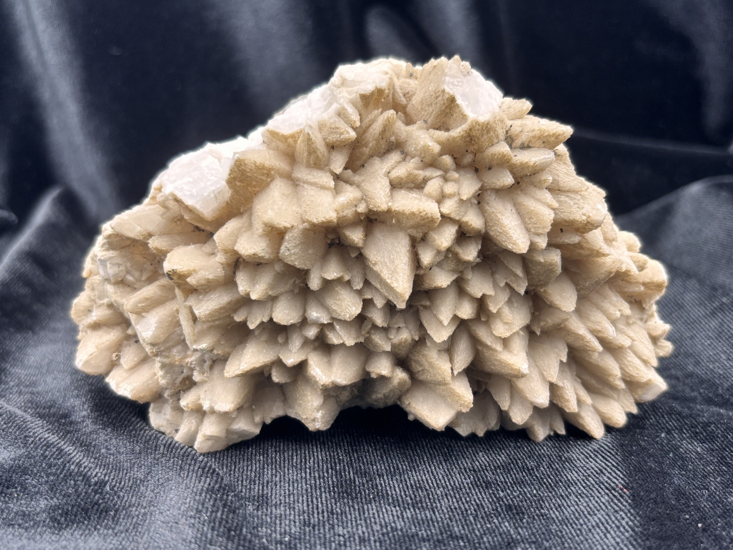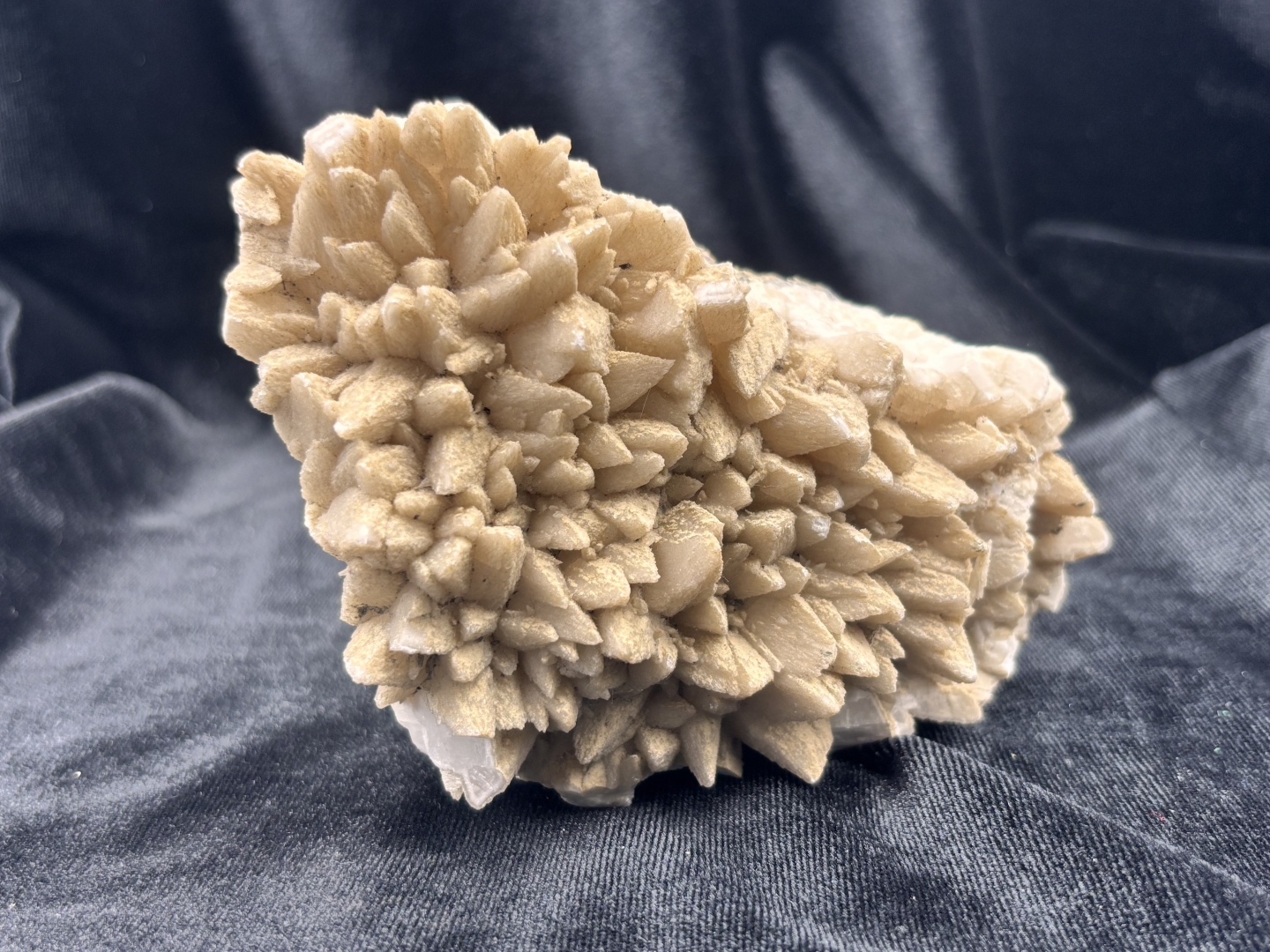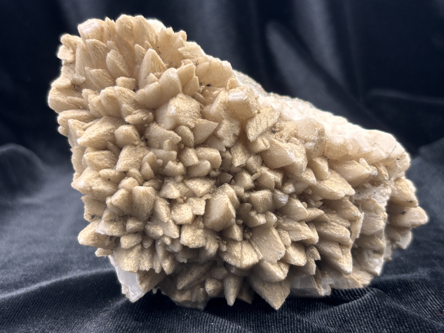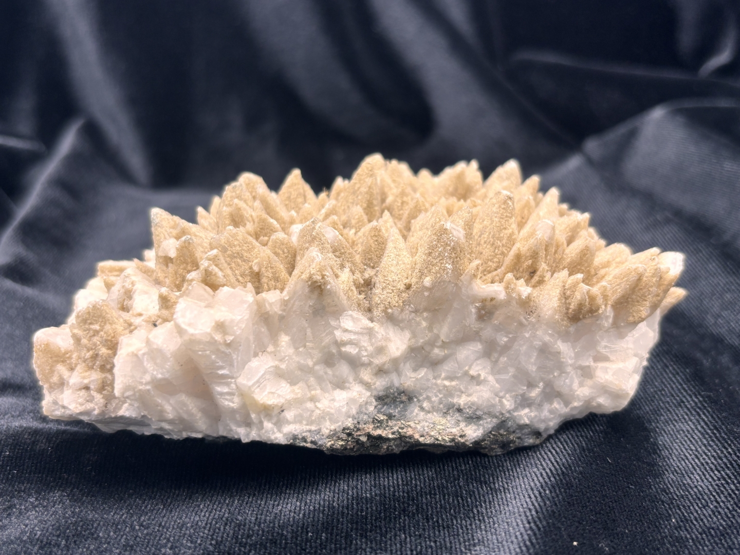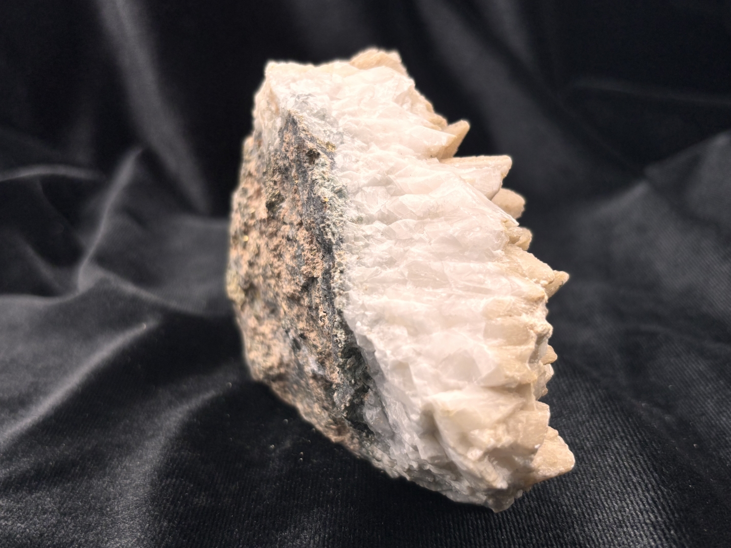 Hondentand-calciet (dogtooth calcite), met (chalko)pyriet op basis matrix - 573 gram - 13 x 8 x 5 cm.