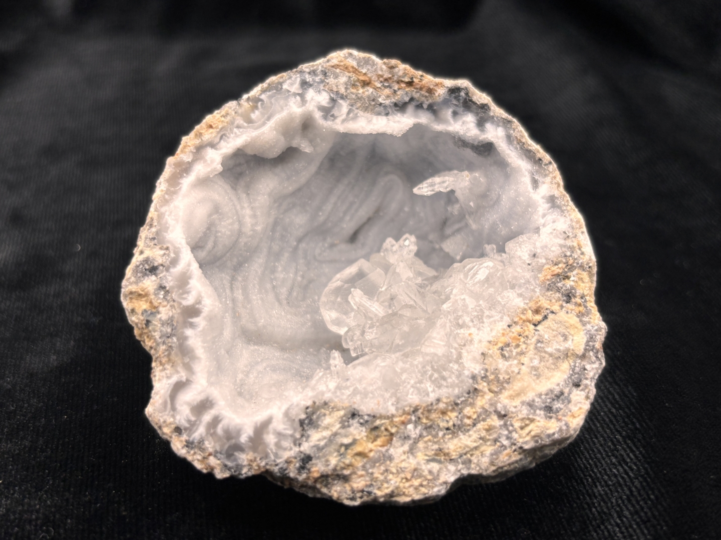 Heerlijke chalcedoon-geode met mooie bergkristalformatie, Mexico - 143 gram - 6,5 x 6,5 x 3,5 cm.