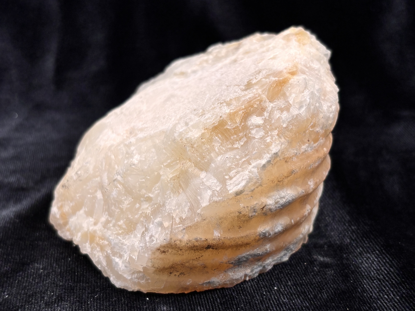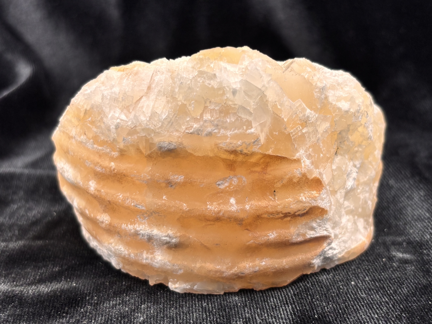 Stuk afgezaagde stalagtiet (calciet) uit de Sans Souci-mijn, Sauerland, Duitsland (iets fluor) - 706 gram - 10 x 9 x 6 cm.